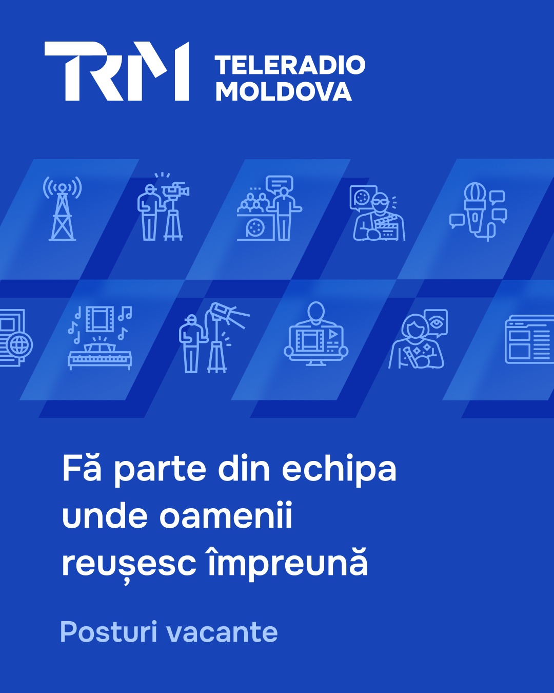 Echipa Teleradio-Moldova este în continuă creștere, așa că fie că ești profesionist cu o vastă experiență în domeniu, sau un tânăr aflat la început de carieră, așteptăm să te cunoaștem!
